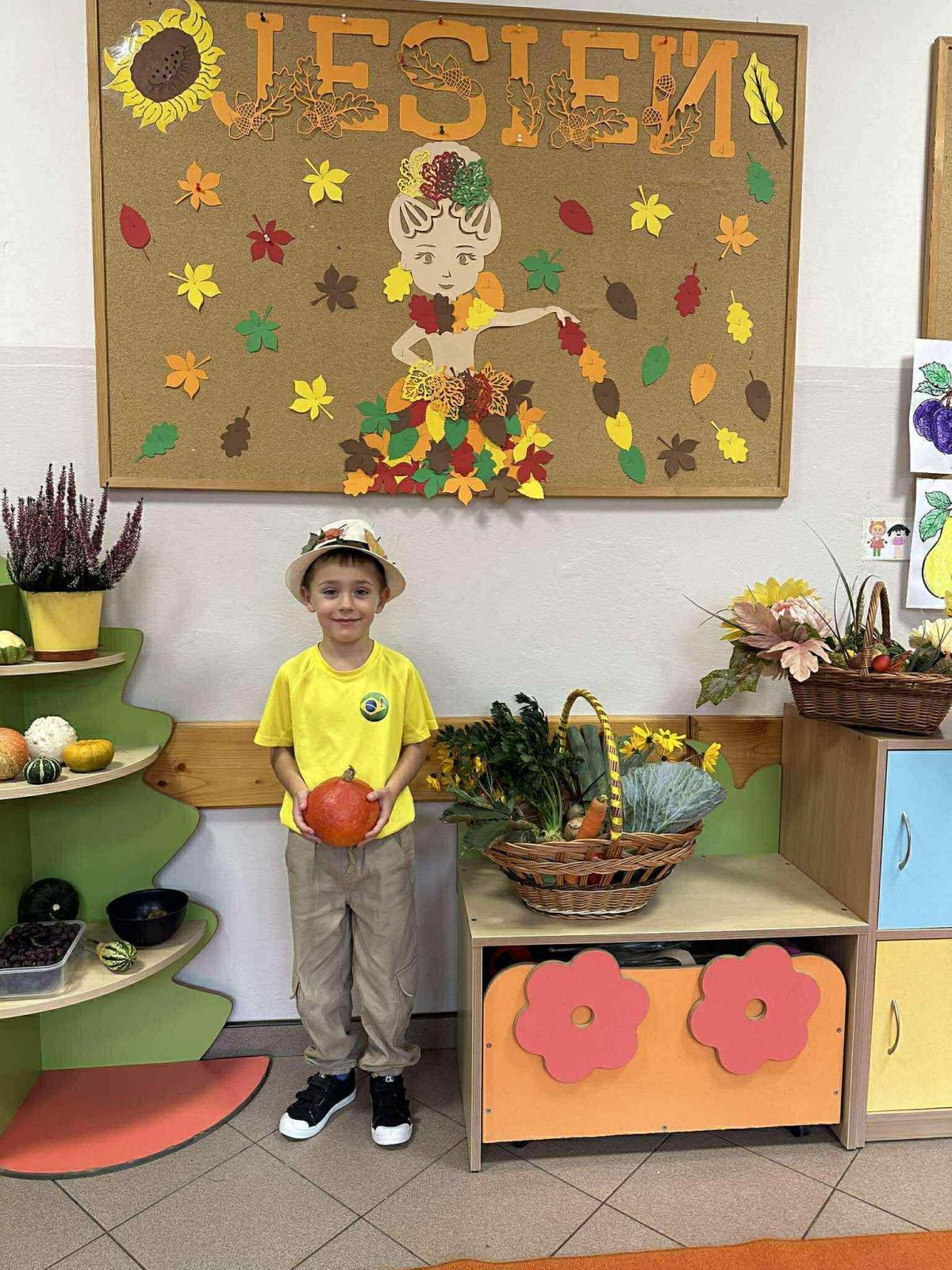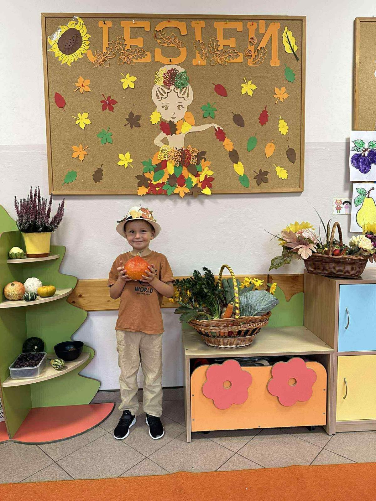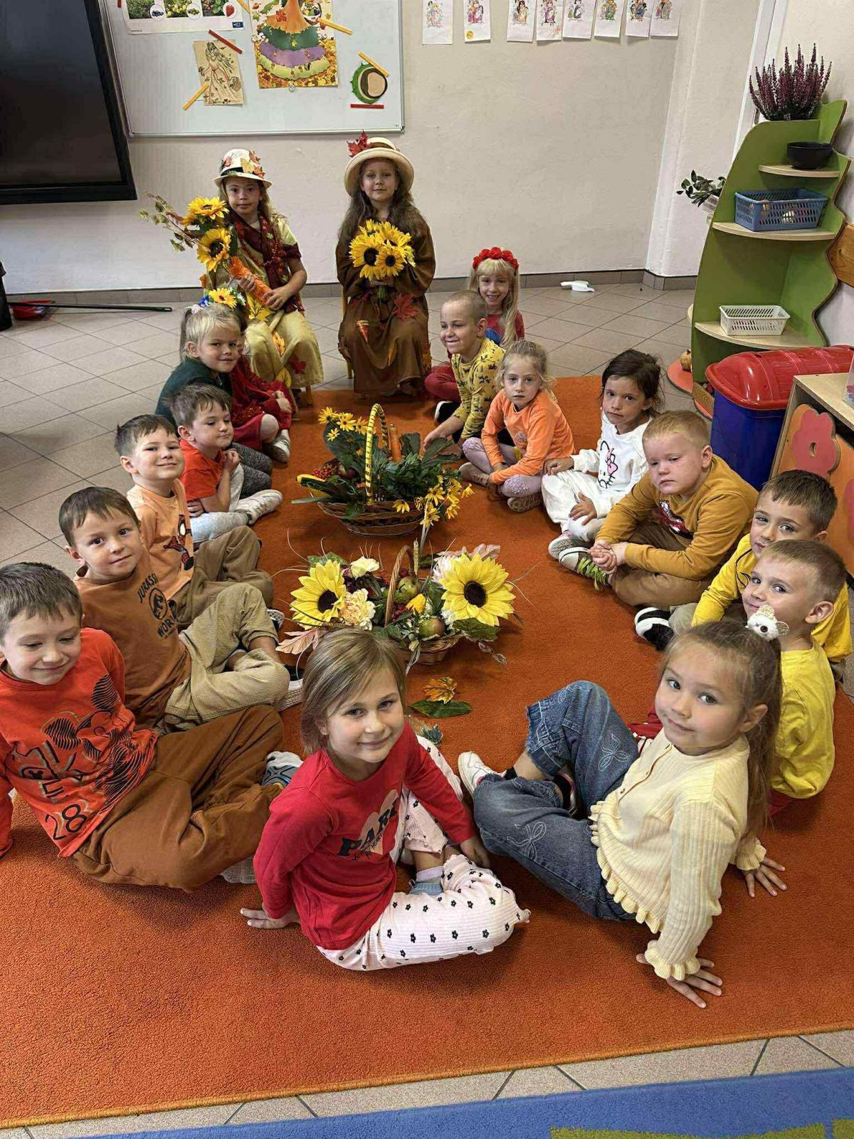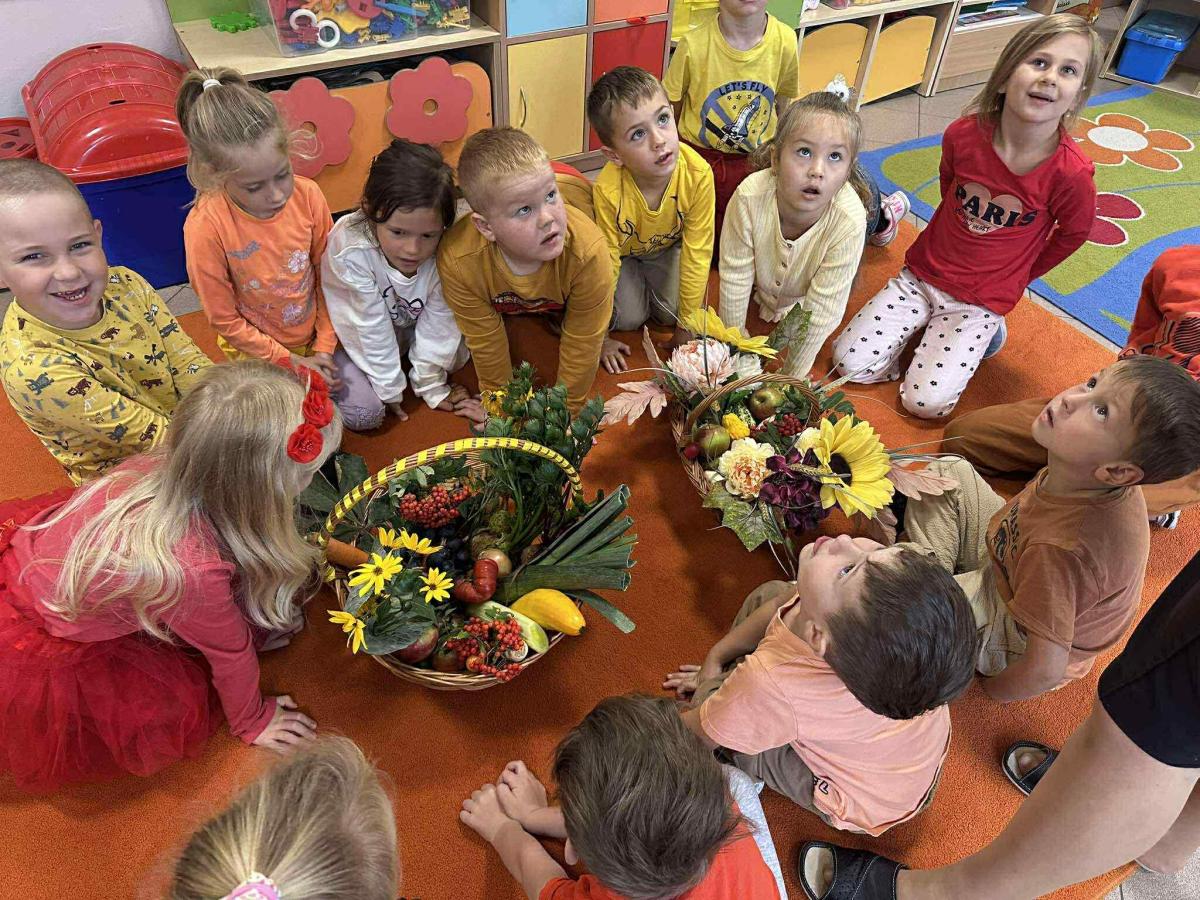 23 września w naszej zerówce odbyło się „Powitanie Jesieni’. Celem zabaw związanych z tematyką było utrwalenie wiadomości o jesieni, integrowanie się dzieci, a przede wszystkim wspaniała zabawa. W kąciku przyrody pojawiły się różne dary jesieni: kolorowe liście, kasztany, żołędzie, owoce z sadu i warzywa. Każde dziecko wzięło udział w sesji jesiennej.