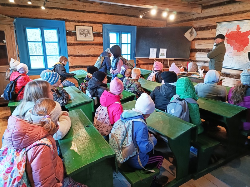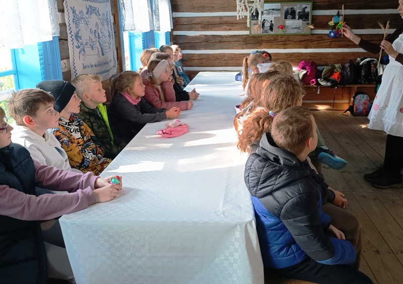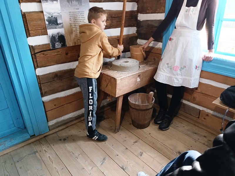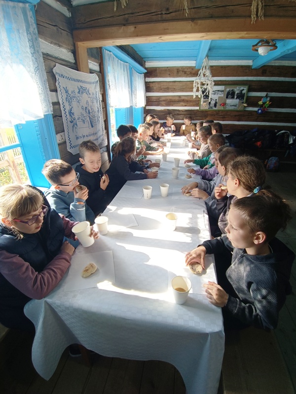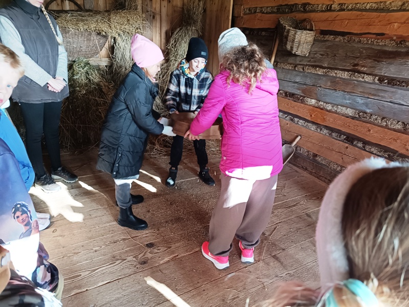Po warsztatach uczniowie obejrzeli jeszcze kilka pomieszczeń skansenu (m.in.: szkołę,