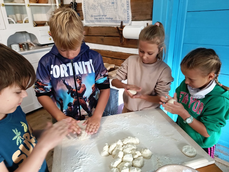 wyrabiali ciasto i formowali placuszki. W trakcie pracy wszyscy zgodnie śpiewali piosenkę