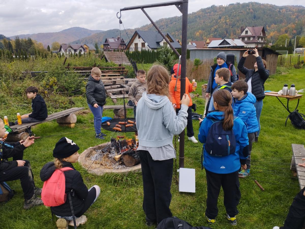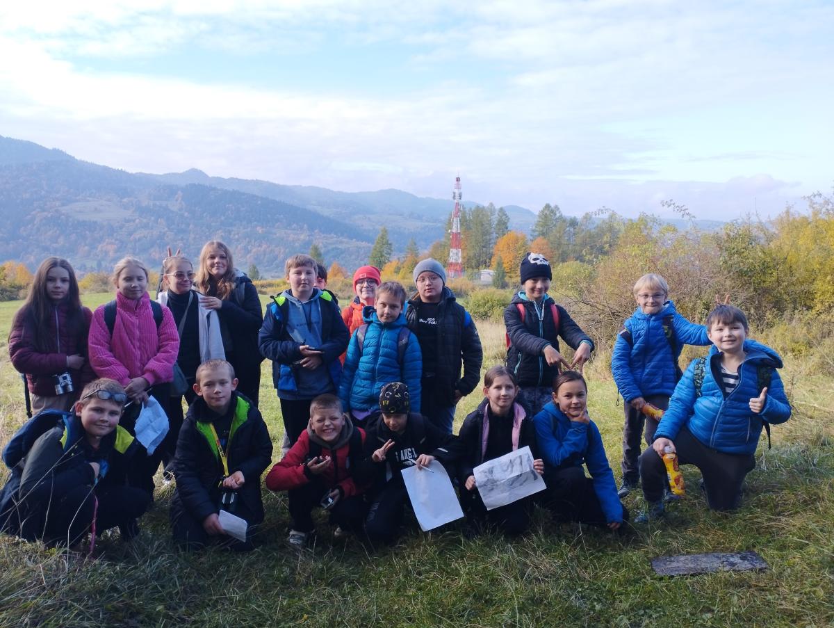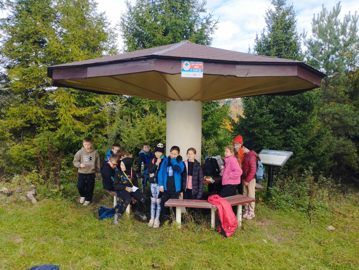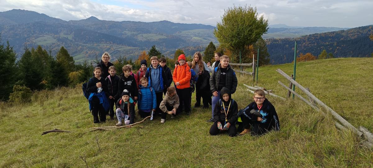 W piękny, jesienny dzień 16 października klasa 4a wyruszyła na pieszą wycieczkę na Stajkową – jeden ze szczytów w Beskidzie Sądeckim. Wędrowaliśmy czerwonym szlakiem, który prowadził nas przez malownicze jesienne krajobrazy. Podczas zajęć terenowych mieliśmy okazję obserwować przyrodę z bliska – korzystaliśmy z lup i lornetek, by dokładniej przyjrzeć się liściom, owadom oraz ptakom. Uczyliśmy się także, jak posługiwać się kompasem i orientować w terenie. Rozpoznawaliśmy gatunki roślin charakterystycznych dla regionu oraz badaliśmy odczyn gleby przy pomocy kwasomierza glebowego.