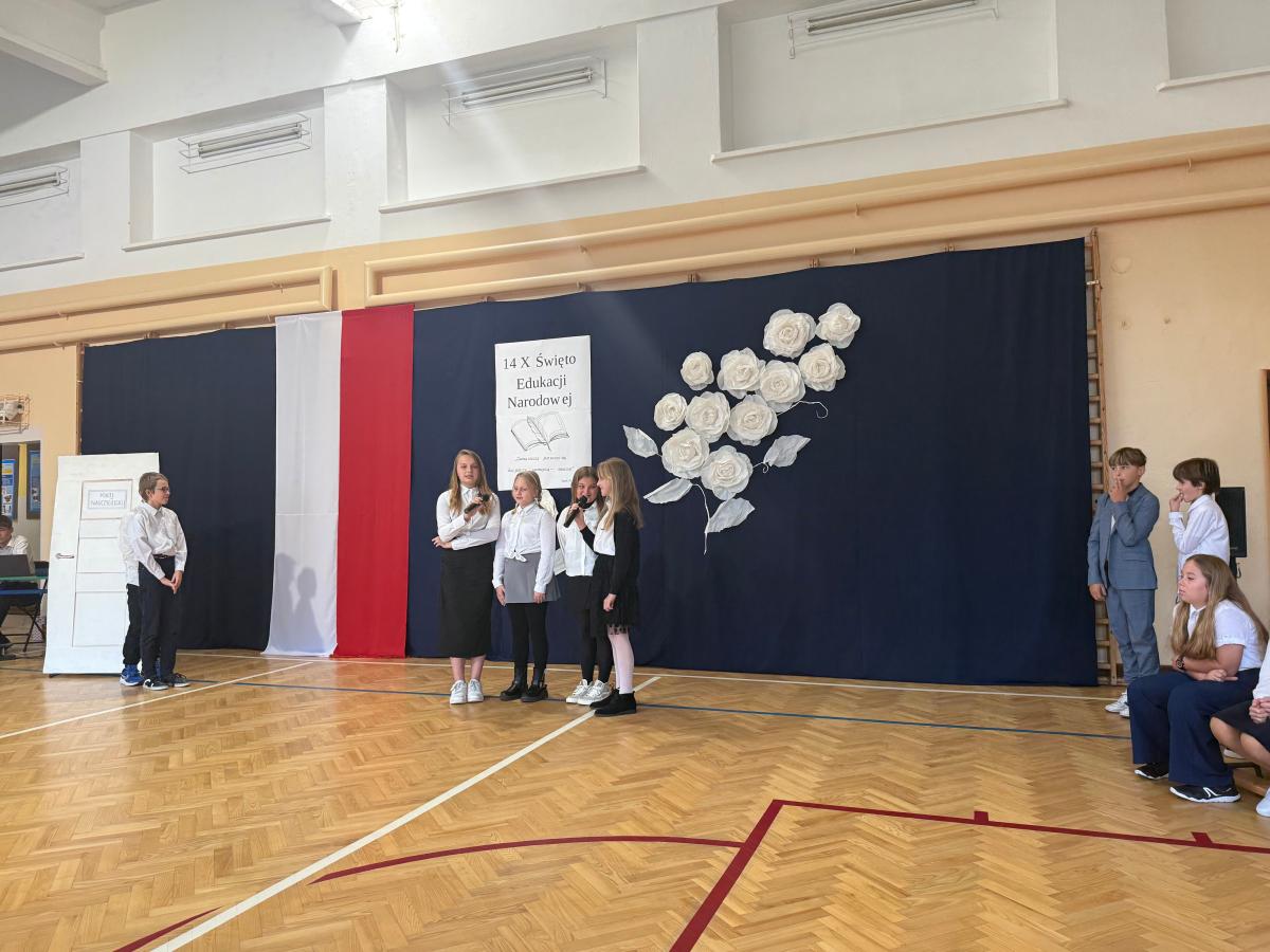14 października w naszej szkole uroczyście obchodziliśmy Dzień Edukacji Narodowej. Była todoskonała okazja do wyrażenia wdzięczności wszystkim nauczycielom i pracownikom szkoły za ich codzienny trud, zaangażowanie i serce wkładane w wychowanie młodego pokolenia. Uroczystość rozpoczęła się odśpiewaniem Hymnu, a następnie przemówiła Pani Dyrektor Zofia Jerzyńska oraz zaproszeni goście – Wójt Gminy Krościenko nad Dunajcem p. Stanisław Tkaczyk oraz Przewodniczący Rady Rodziców – p. Mateusz Stochmal. W imieniu Samorządu Uczniowskiego życzenia wszystkim nauczycielom złożył przewodniczący szkoły Miłosz Majkrzak. Po części oficjalnej rozpoczęła się część artystyczna. Uczniowie klasy 4a, 5a oraz 2b zaprezentowali montaż słowno-muzyczny. To był wyjątkowy dzień pełen radości, uśmiechów i serdecznych gestów.