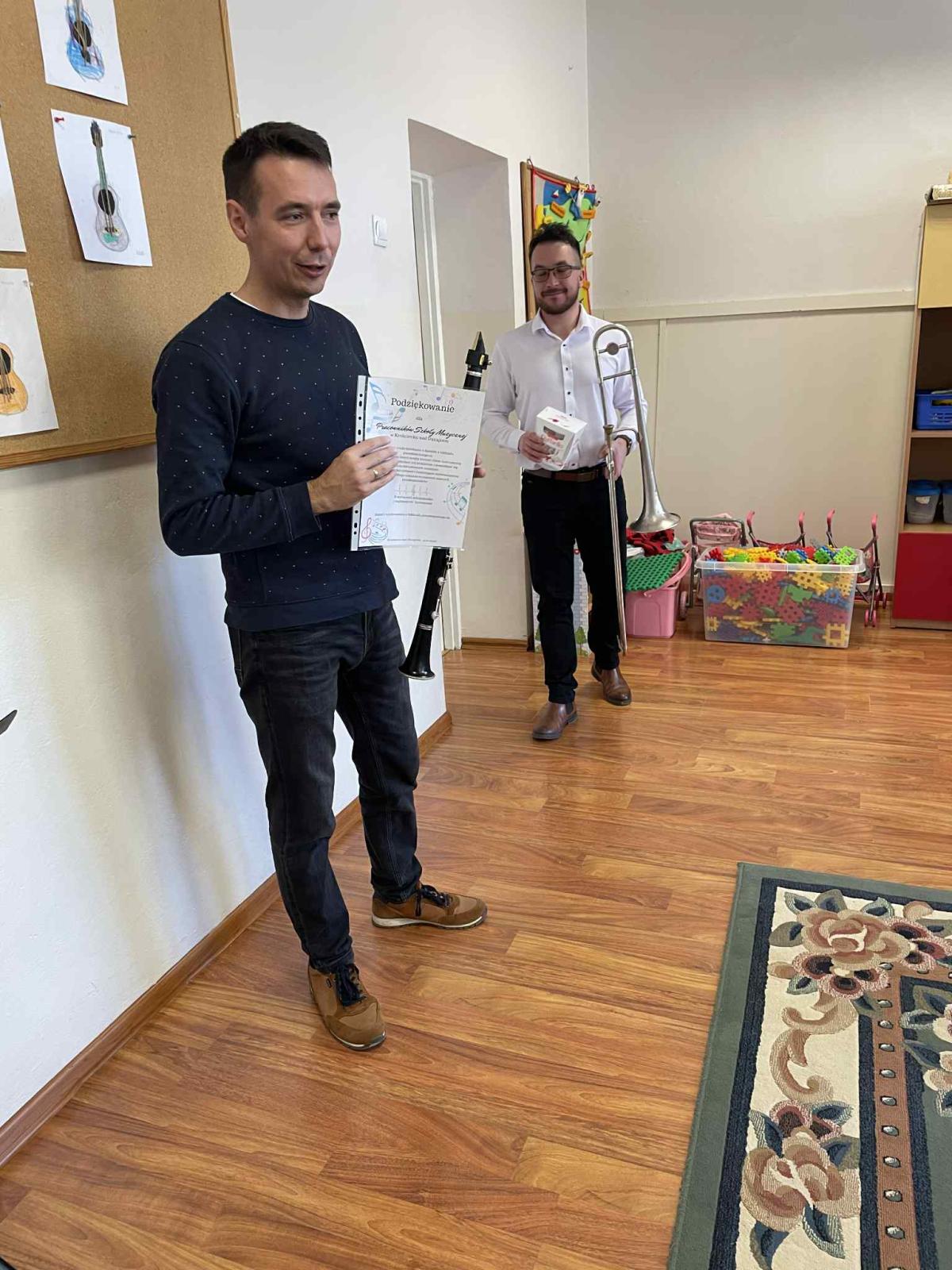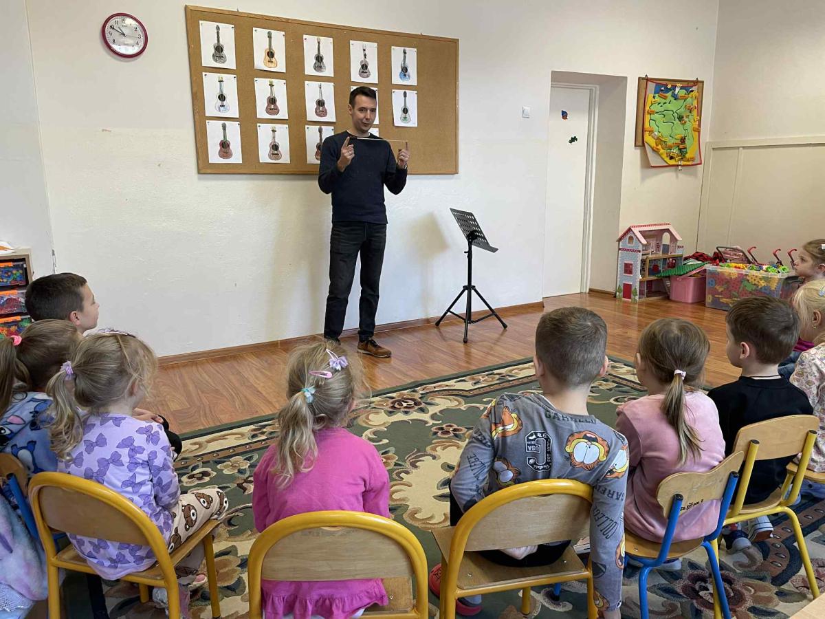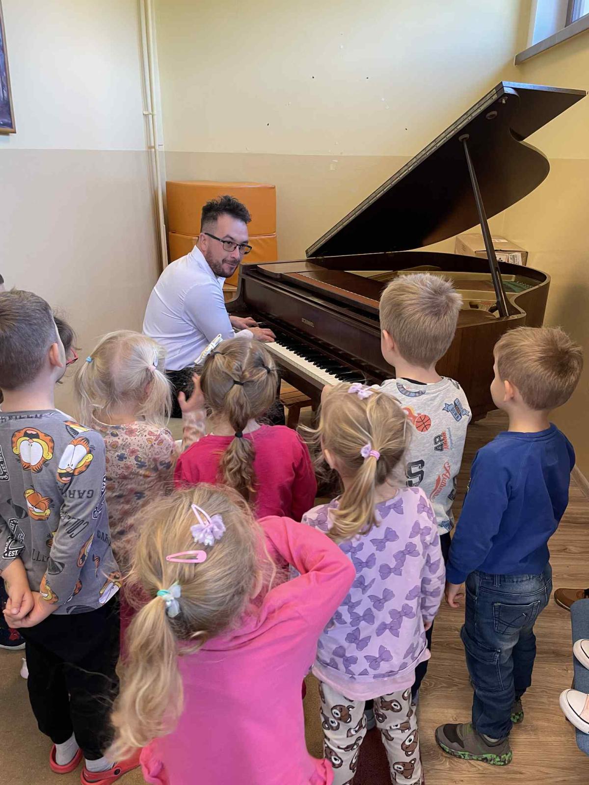 Bardzo dziękujemy panu Wojciechowi Kwiatkowi za wspaniałe spotkanie, które z pewnością rozwinęło zainteresowania dzieci światem muzyki i instrumentów.