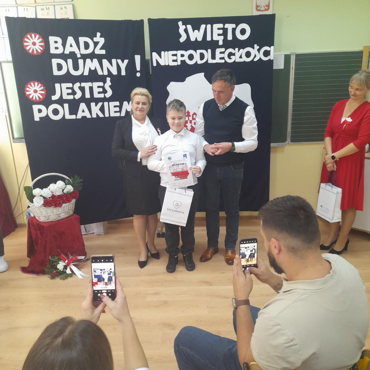 07.11.2025 roku troje uczniów naszej szkoły brało udział w VII Międzygminnym Konkursie Recytatorskim Poezji Patriotycznej ,,Bądź dumny! Jesteś Polakiem!" zorganizowanym przez Szkołę Podstawową nr 2 w Szczawnicy. W grupie wiekowej klas IV - VI naszą szkołę reprezentował uczeń klasy V - Grzegorz Ćwiertniewicz, który uzyskał I miejsce.