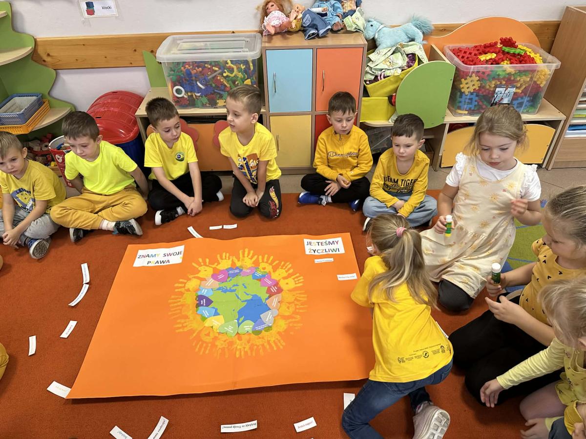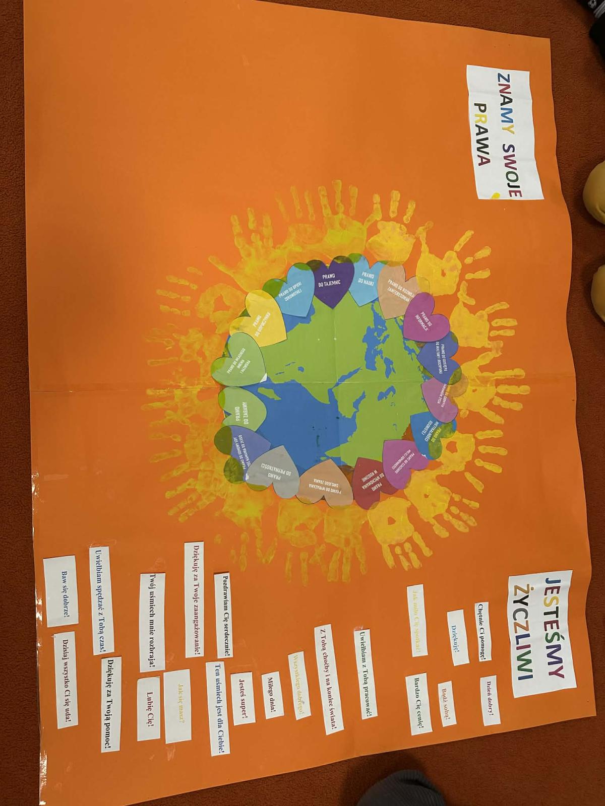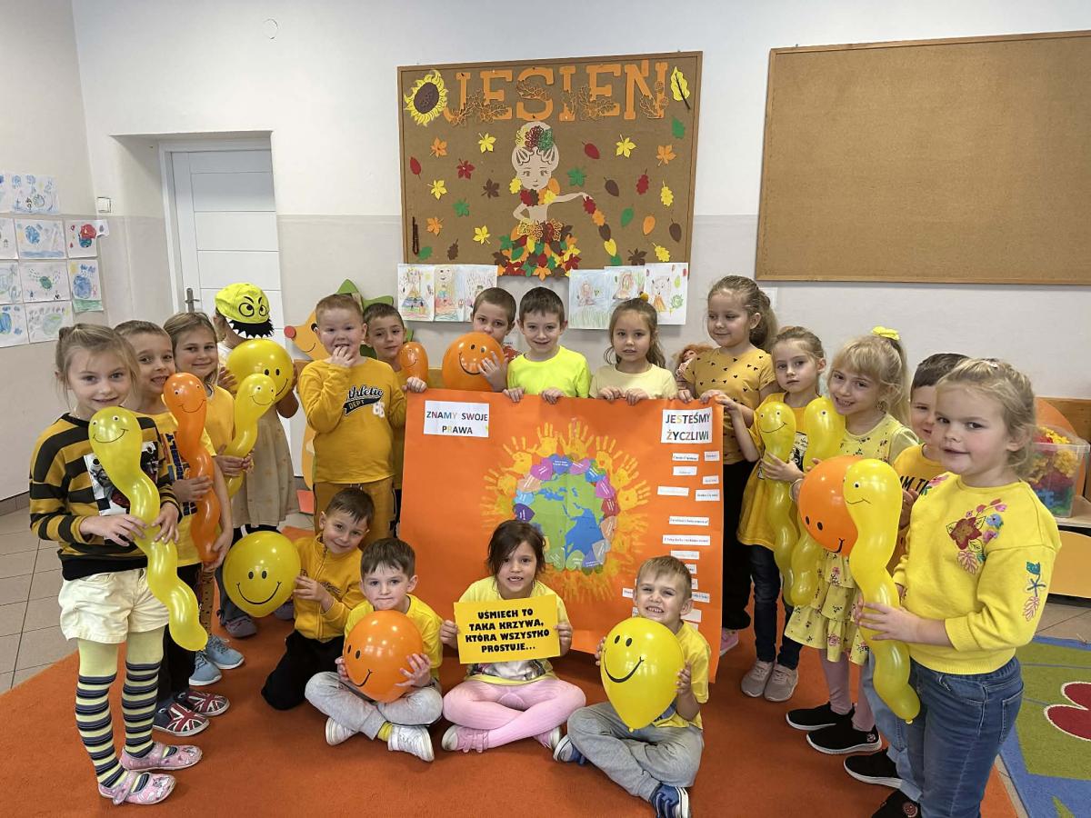 Dnia 21.11.2025r. w naszym oddziale obchodziliśmy Dzień Życzliwości i Pozdrowień połączony wraz z Międzynarodowym Dniem Praw Dziecka. Jest to niezwykle wartościowe i piękne święto. Ideą tego dnia jest uwrażliwienie ludzi na wzajemną życzliwość, miłe słowo i wzbudzenie pozytywnych emocji. Przesłanie tej światowej akcji jest proste – bądźmy życzliwi codziennie, a nie tylko od święta. Nasi najmłodsi uczniowie tego dnia tworzyli plakat i poznawali swoje prawa oraz obdarowywali się miłymi słowami i gestami. Dzieci zaniosły radość i życzliwość do klas szkolnych, sekretariatu oraz przekazały symboliczny balon. Nie zabrakło oczywiście wspólnej zabawy i tańców z udziałem balonów.