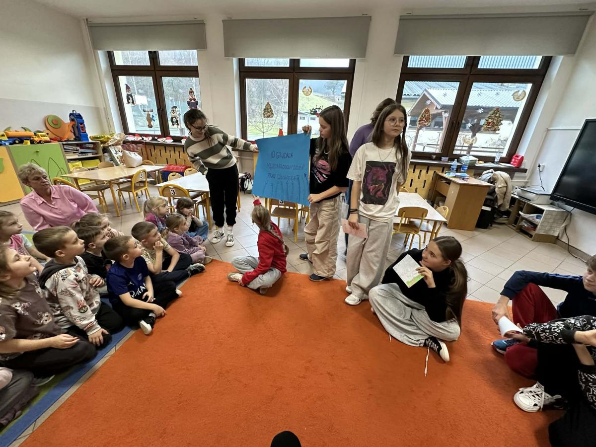 Dzień Praw Człowieka to święto obchodzone corocznie 10 grudnia, a ustanowione przez Zgromadzenie Ogólne ONZ w rocznicę podpisania Powszechnej Deklaracji Praw Człowieka w 1948 roku. Z tej okazji uczniowie naszej szkoły przygotowali krótkie zajęcia dla dzieci z oddziału zerowego. Przybliżyli młodszym kolegom temat praw człowieka, prezentując krótkie historyjki oraz rozmowy o szacunku, równości i wzajemnej życzliwości. Uczniowie przypomnieli również najważniejsze informacje związane z tym dniem i podkreślili, że prawa człowieka dotyczą każdego – bez wyjątku.