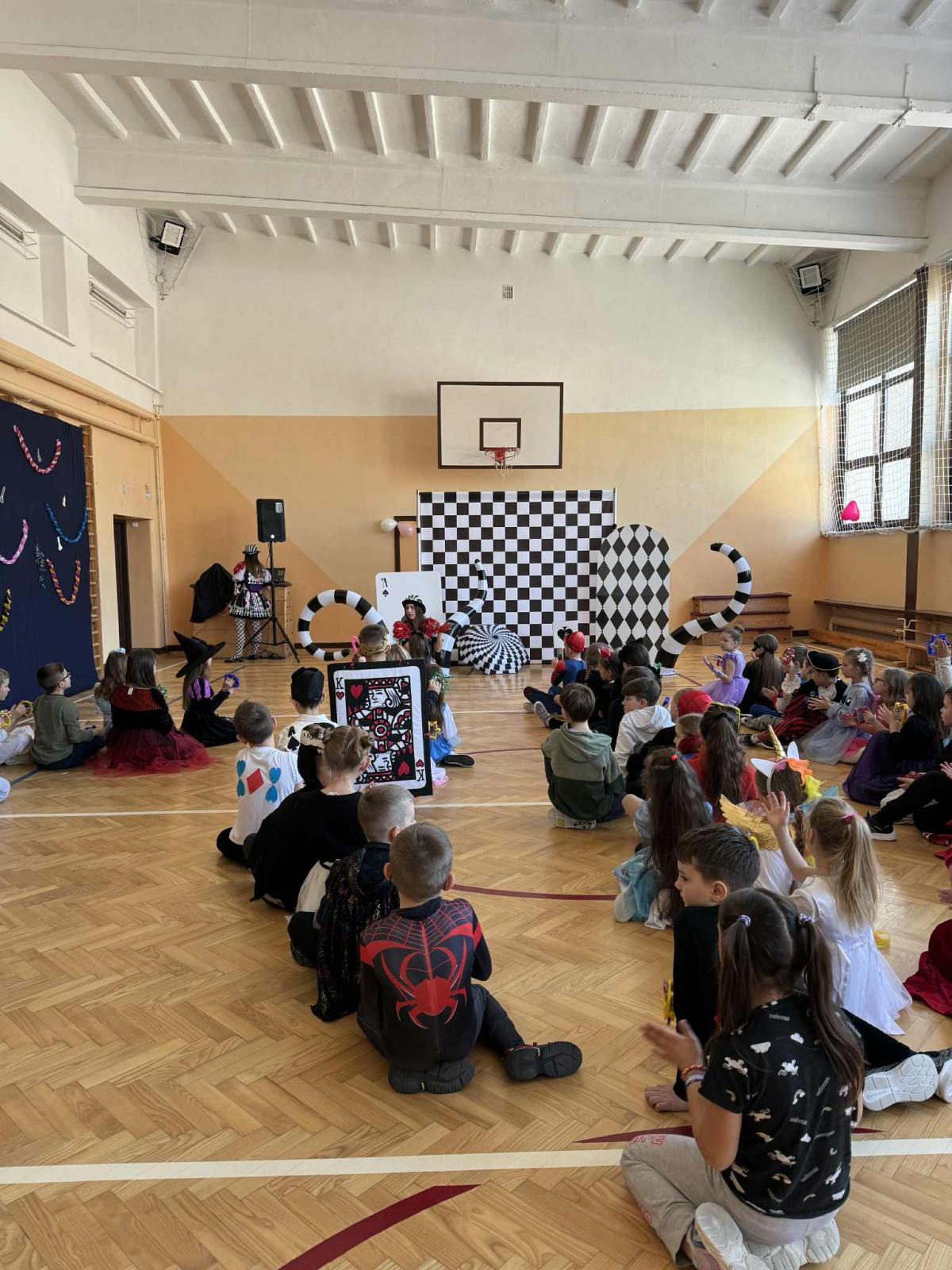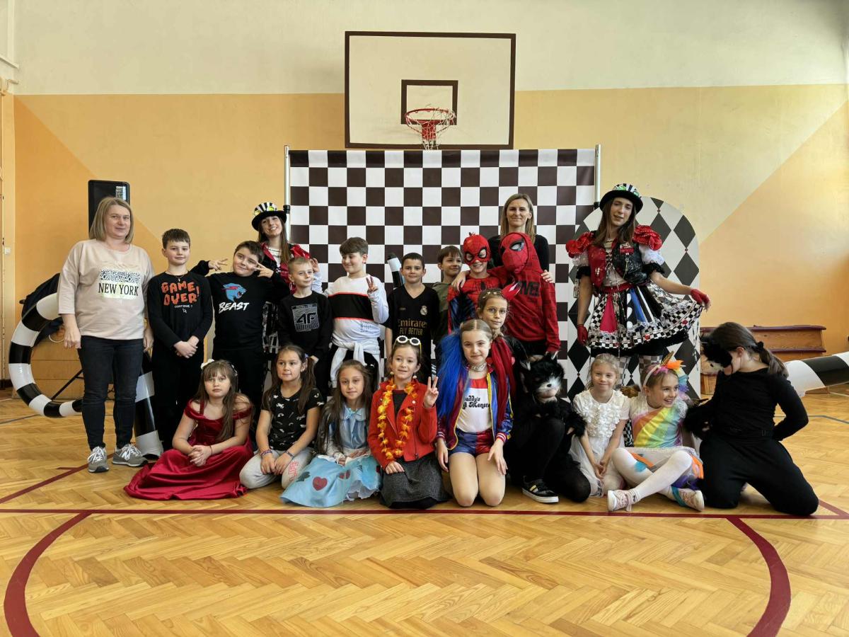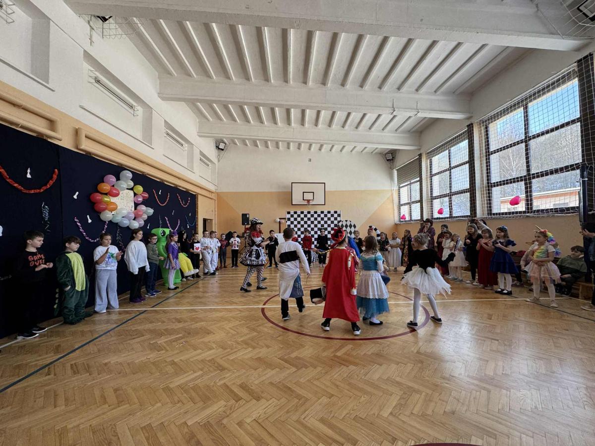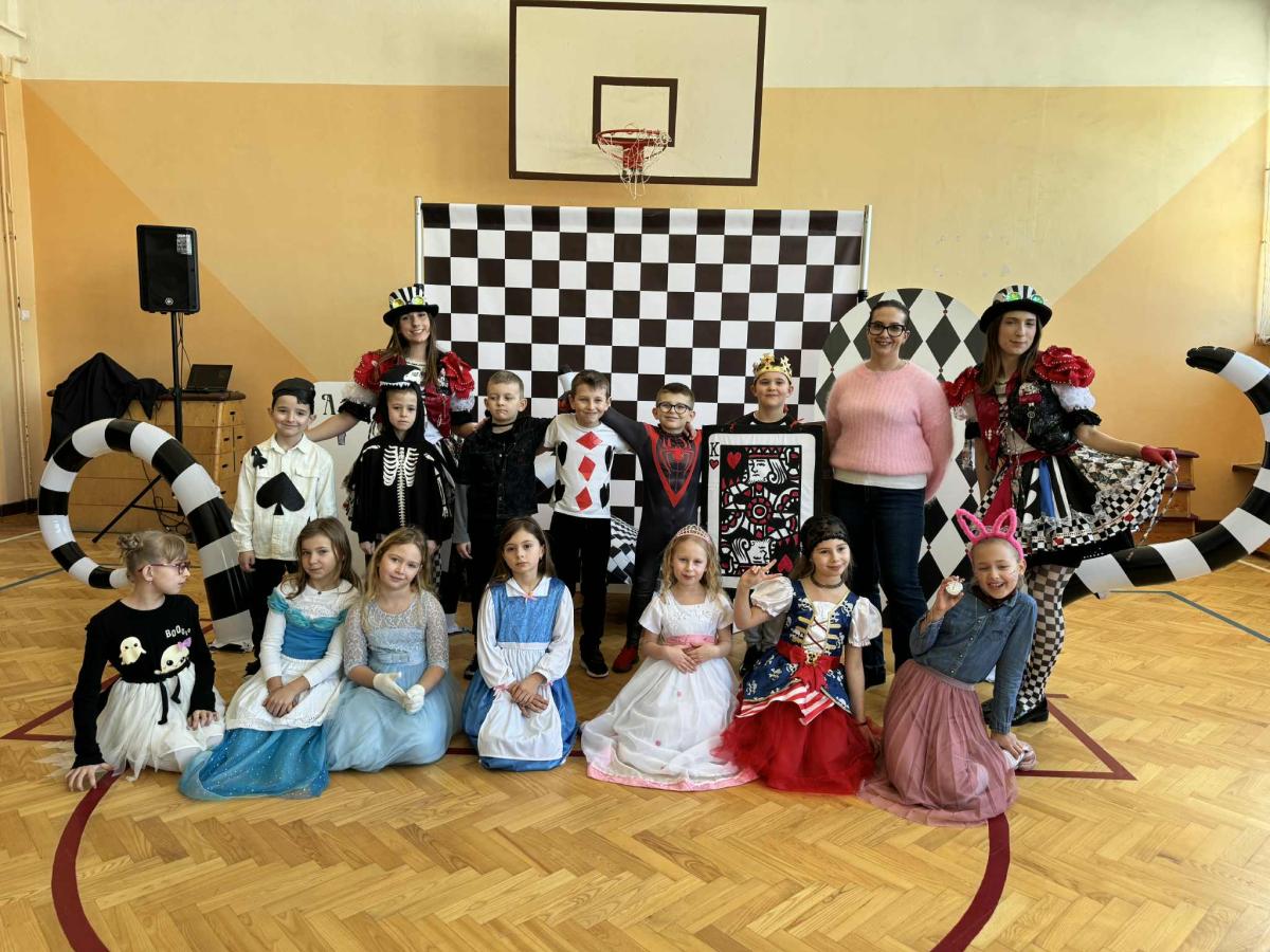 Uczniowie klas 1–3 wzięli udział w balu karnawałowym inspirowanym „Alicją w Krainie Czarów” 🎩♠️ Sala wypełniła się kolorowymi strojami, tańcami i radosną zabawą przy muzyce 🎶 Nie zabrakło konkursów, wspólnych zabaw i uśmiechów od ucha do ucha 😄 To był wyjątkowy dzień pełen dziecięcej radości i niezapomnianych chwil 💙