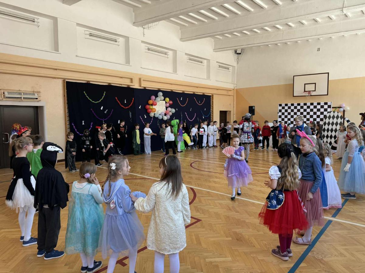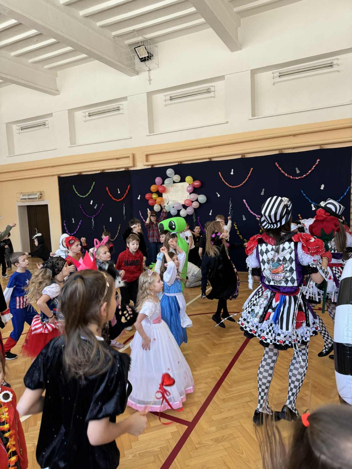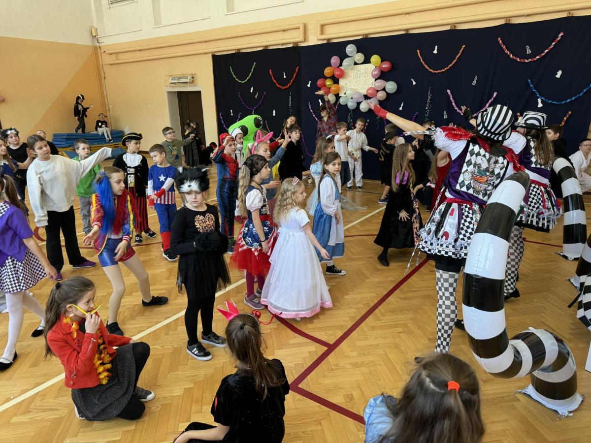 Uczniowie klas 1–3 wzięli udział w balu karnawałowym inspirowanym „Alicją w Krainie Czarów” 🎩♠️ Sala wypełniła się kolorowymi strojami, tańcami i radosną zabawą przy muzyce 🎶 Nie zabrakło konkursów, wspólnych zabaw i uśmiechów od ucha do ucha 😄 To był wyjątkowy dzień pełen dziecięcej radości i niezapomnianych chwil 💙