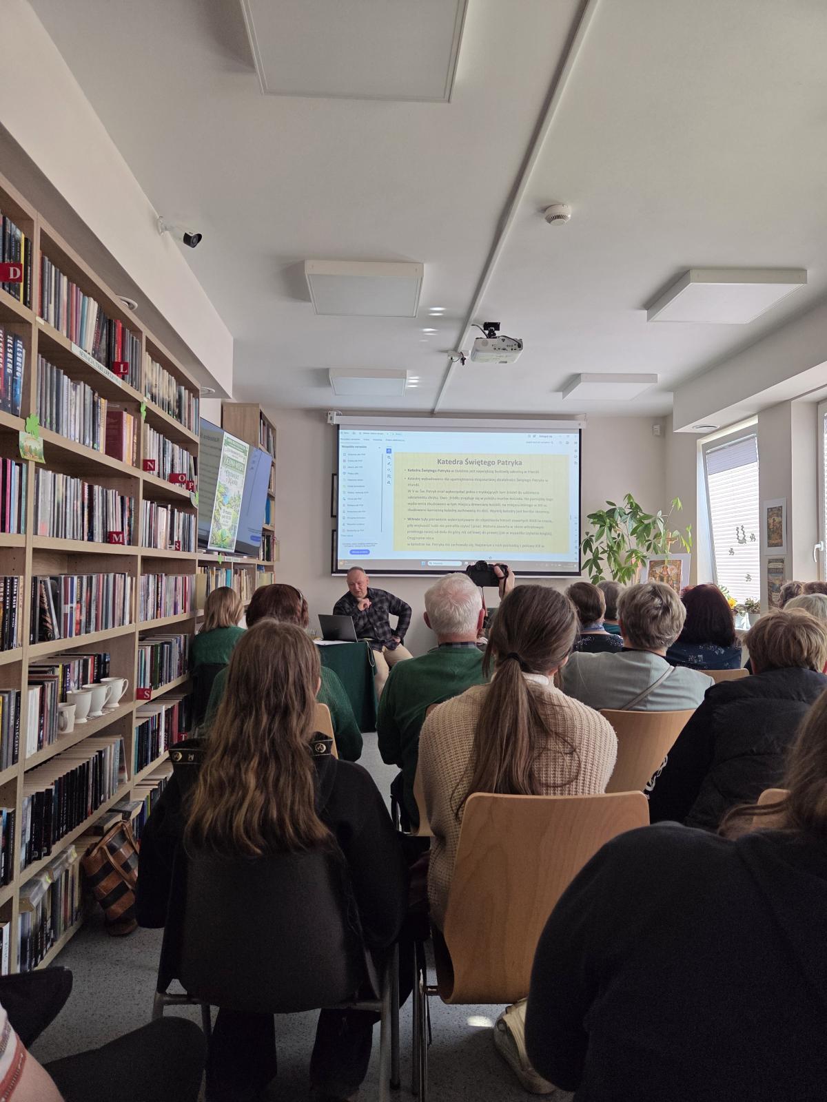W ramach zajęć poświęconych obchodom Dnia Świętego Patryka uczniowie klasy 8a odwiedzili Bibliotekę Publiczną, gdzie uczestniczyli w wyjątkowym spotkaniu poświęconym Irlandii.
