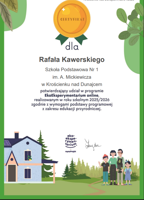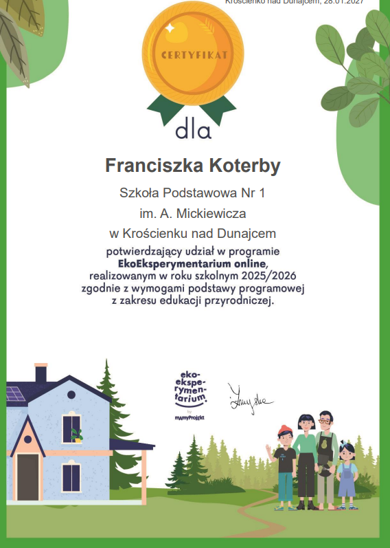 Uczniowie z klas VI oraz VIII podczas zajęć z edukacji zdrowotnej wzięli udział w ogólnopolskim projekcie pt. "EkoEksperymentatorium". To zestaw gier online, które uczą i rozwijają dobre praktyki ekologiczne, jednocześnie realizując podstawę programową. Razem z bohaterami gry – rodziną Łaskotków – poznaliśmy proste sposoby na ochronę środowiska w domu, mieście przyszłości, a także w lesie i ogrodzie.