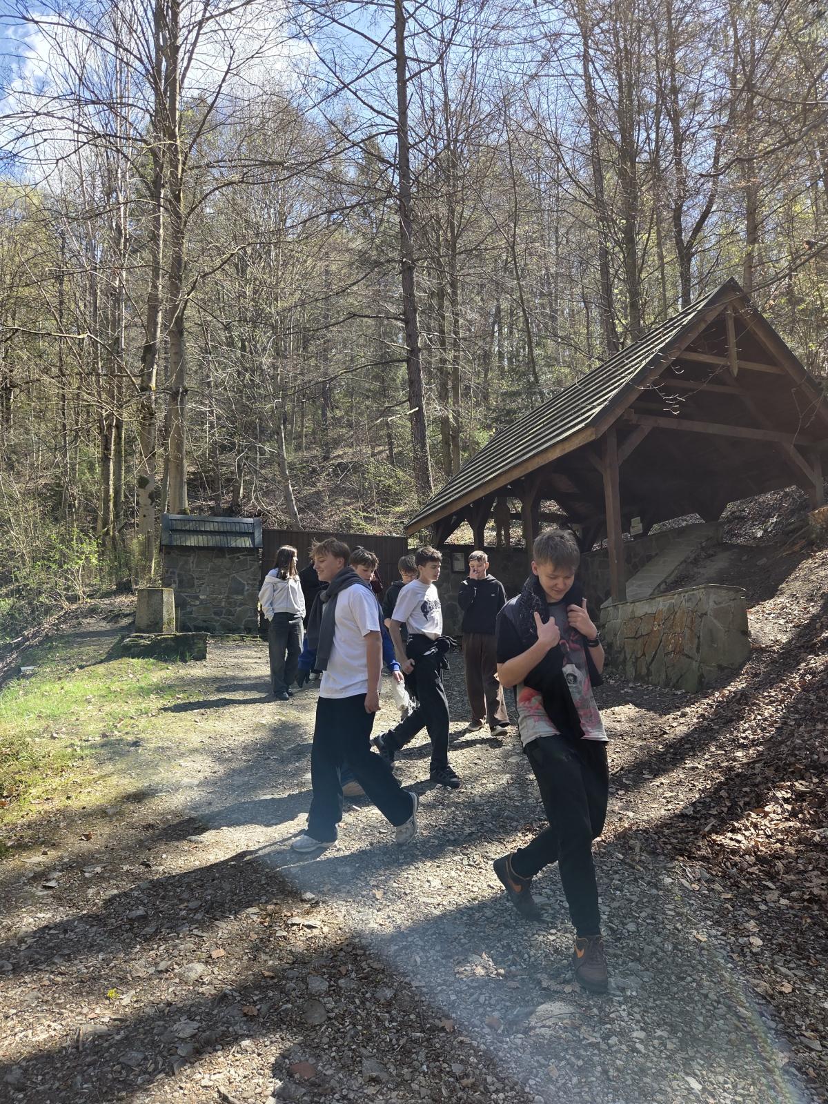 W dniu 23.04.2026 r. uczniowie klasy 8a wraz z wychowawcą, panią Agnieszką Warzechą, wzięli udział w corocznej inicjatywie na rzecz lokalnego środowiska. Celem wyjścia było uporządkowanie terenu wokół źródełka „Stefan i Michalina” znajdującego się przy ulicy Polnej.